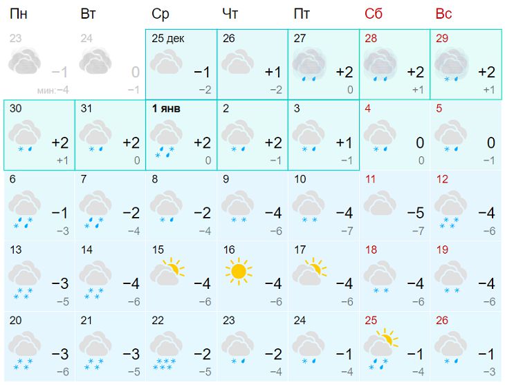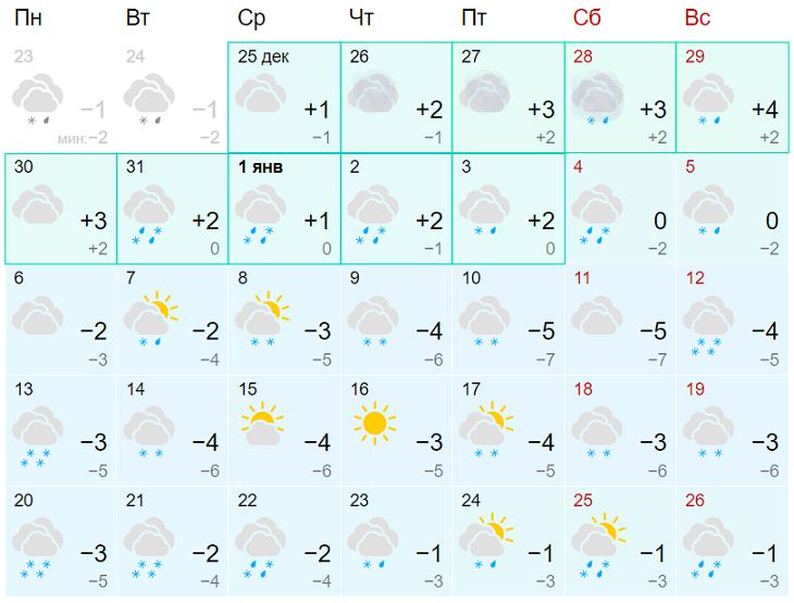 В первой декаде января осадки будут выпадать в виде мокрого снега и снега с дождем, затем в основном в виде снега. Солнечных дней будет мало.