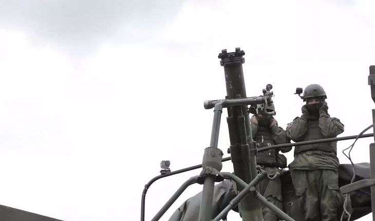 Расчет БМ-21 «Град» 6-й армии ЗВО бьет по противнику, обеспечивая продвижение пехоты в Донбассе.