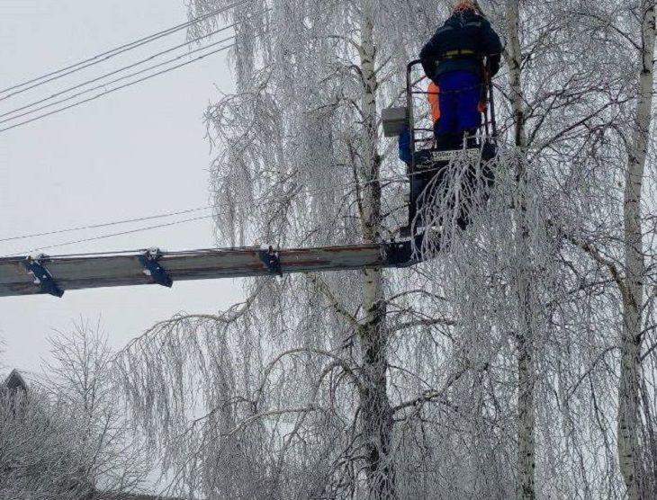 Объем работ остается значительным. Специалисты одновременно восстанавливают поврежденные участки магистральных воздушных линий электропередачи высокого напряжения — 110 и 35 киловольт, а также распределительных сетей 10 кВ.