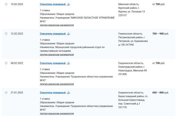 В частности, от 1 250 до 1 280 рублей спасателю-пожарному предлагает Минское городское управление МЧС.