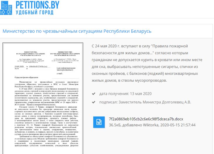Белорусы в апреле 2020 года обратились к власти с просьбой запретить курение на балконах из-за безответственных соседей, бросающих непотушенные окурки вниз.