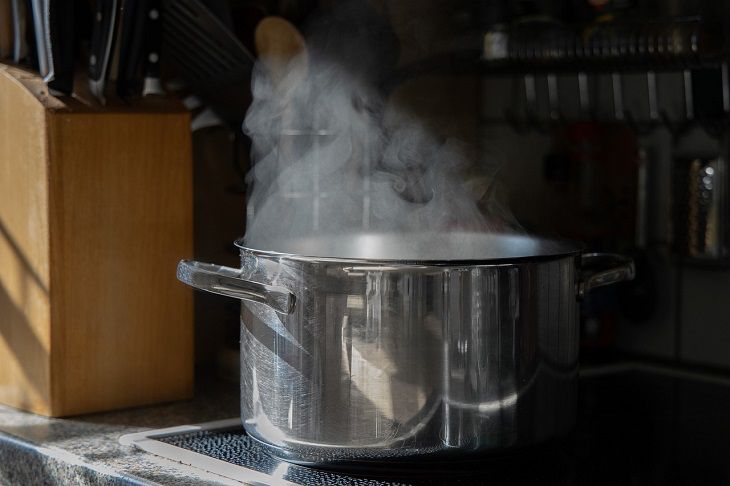 Для более быстрого процесса можно добавить стружку хозяйственного мыла. Затем посуду ставят на огонь и кипятят 2-3 минуты, затем дают остыть и через полчаса удаляют известковые отложения и куски нагара.