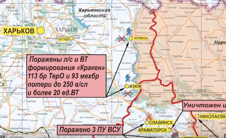 В районах Изюма и Купянска поражены военная техника и живая сила 93-й мехбригады ВСУ, 113-й бригады теробороны и нацформирования «Кракен».