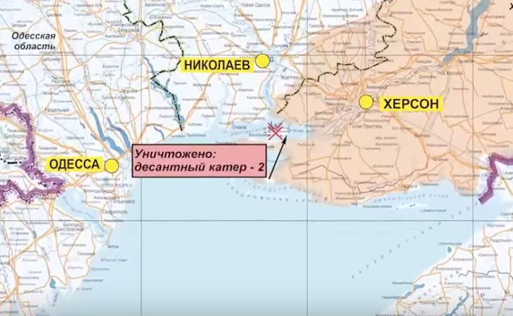 По словам представителя Минобороны России, в результате огневого поражения были уничтожены 2 десантных катера Военно-морских сил Украины с диверсантами на борту.