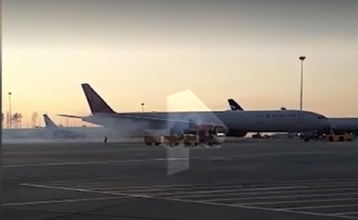 В авиакомпании опровергают информацию о возгорании. В пресс-службе Шереметьево сообщили, что во время запуска второго двигателя произошел выброс продуктов сгорания топлива.