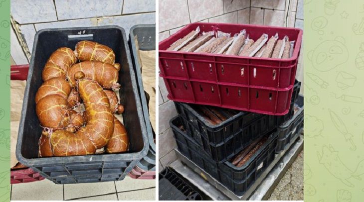 В ходе осмотра производственных помещений контролеры изъяли из оборота более 100 килограммов сырья, срок годности которого уже прошел. Рядом с опасным сырьем хранилась готовая продукция — свыше 200 килограммов колбасных изделий, не имевших никакой идентификации.