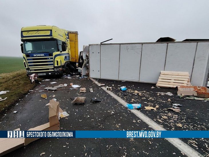 Там на автомагистрали М1/Е30 Брест-Минск-граница России столкнулись два грузовика, – сообщает корреспондент сетевого издания «Белновости».