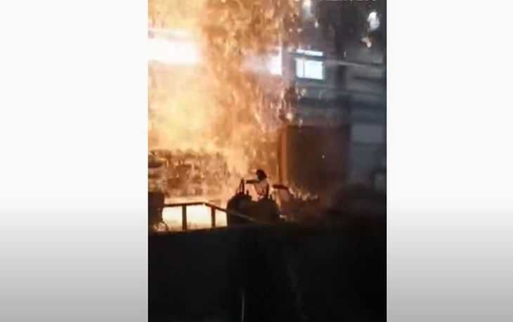 Рабочие решили бросить снежную глыбу в промышленную индукционную печь, в результате этого произошел взрыв, который попал на видео.