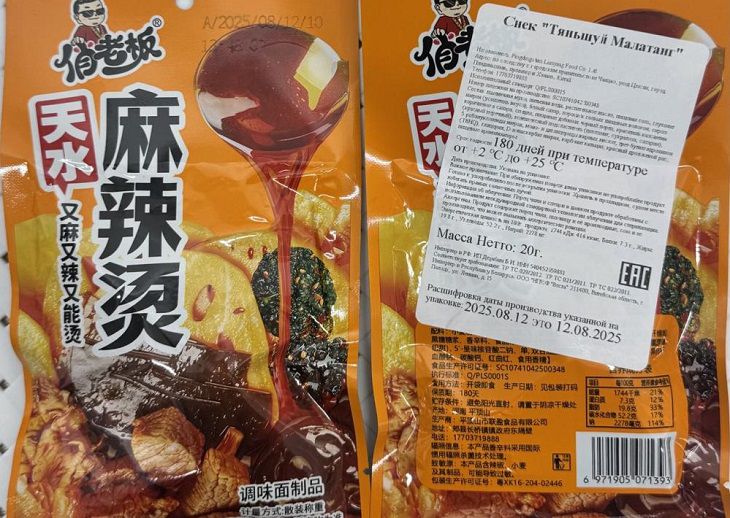 Нарушения выявлены и в другой продукции — мучных латяо со вкусом говядины под маркой Yujinlong, произведенных уже российской компанией ООО «ЧАЙНАФУД».