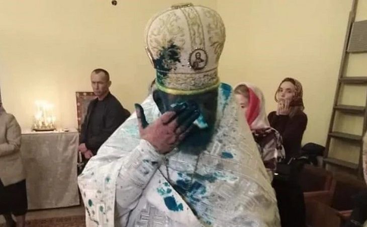 Его облили зеленкой. Прямо во время службы. Инцидент произошел в городе Стрый Львовской области.