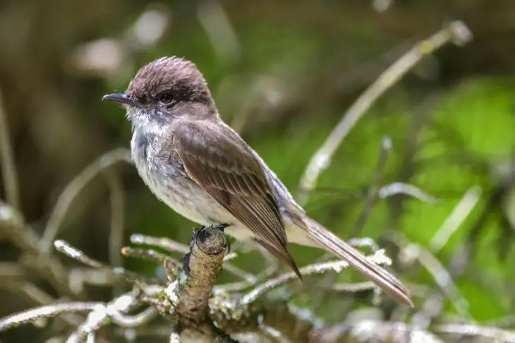 Эксперты отмечают, что фиби — одна из самых наблюдательных птиц. Она часами сидит на ветке, высматривая добычу.