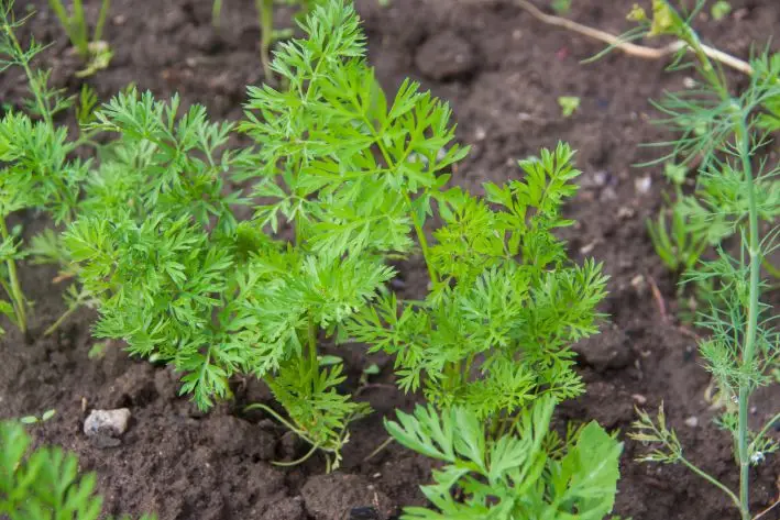 Хорошо чувствует себя и чеснок. Он использует другие питательные вещества и не конкурирует с остатками морковной ботвы.