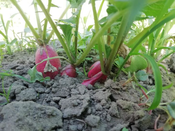 Некоторые огородники используют шпинат как соседнюю культуру. Он быстро растет и защищает почву от пересыхания, что снижает стресс для редиса.