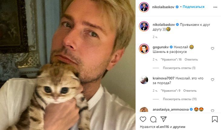Теперь 43-летний Николай Басков живет с голубоглазой шотландской вислоухой кошкой, которой он дал имя Шанель.