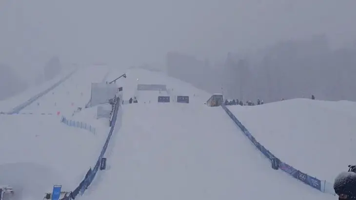 С самого утра над долиной Вальтеллина хозяйничает непогода. Обильный снегопад в сочетании с порывистым ветром создают условия, при которых проведение соревнований становится невозможным из-за соображений безопасности.