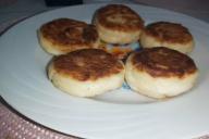 Рецепт соленых сырников с соусом из сметаны, лимонного сока и кинзы.
