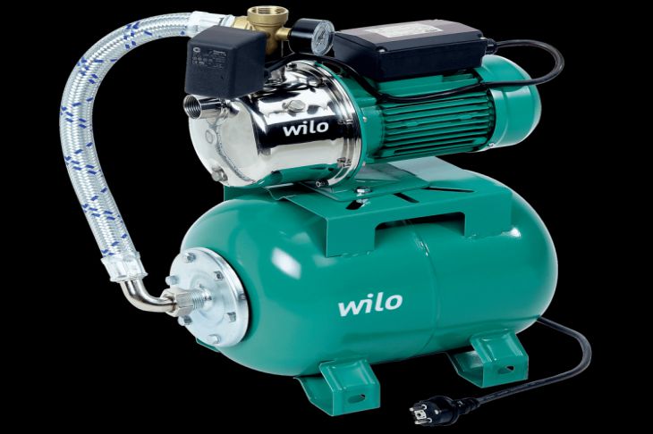 Wilo-Jet HWJ 203-EM поставляется в комплекте с мембранным гидроаккумулятором объёмом ровно 20 литров, который выполняет две важные задачи: гасит гидроудары и сокращает количество включений насоса.
