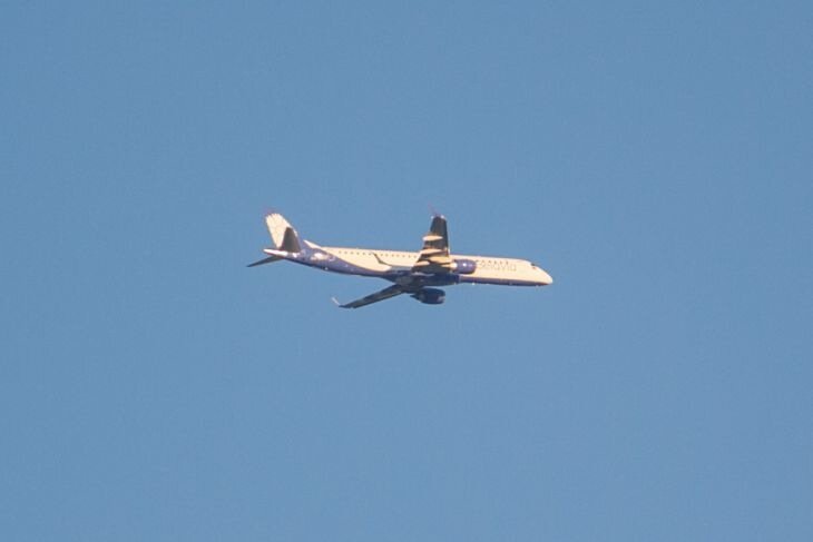 Самолет следует по безопасному маршруту, разработанному с учетом действующих ограничений на полеты в регионе.